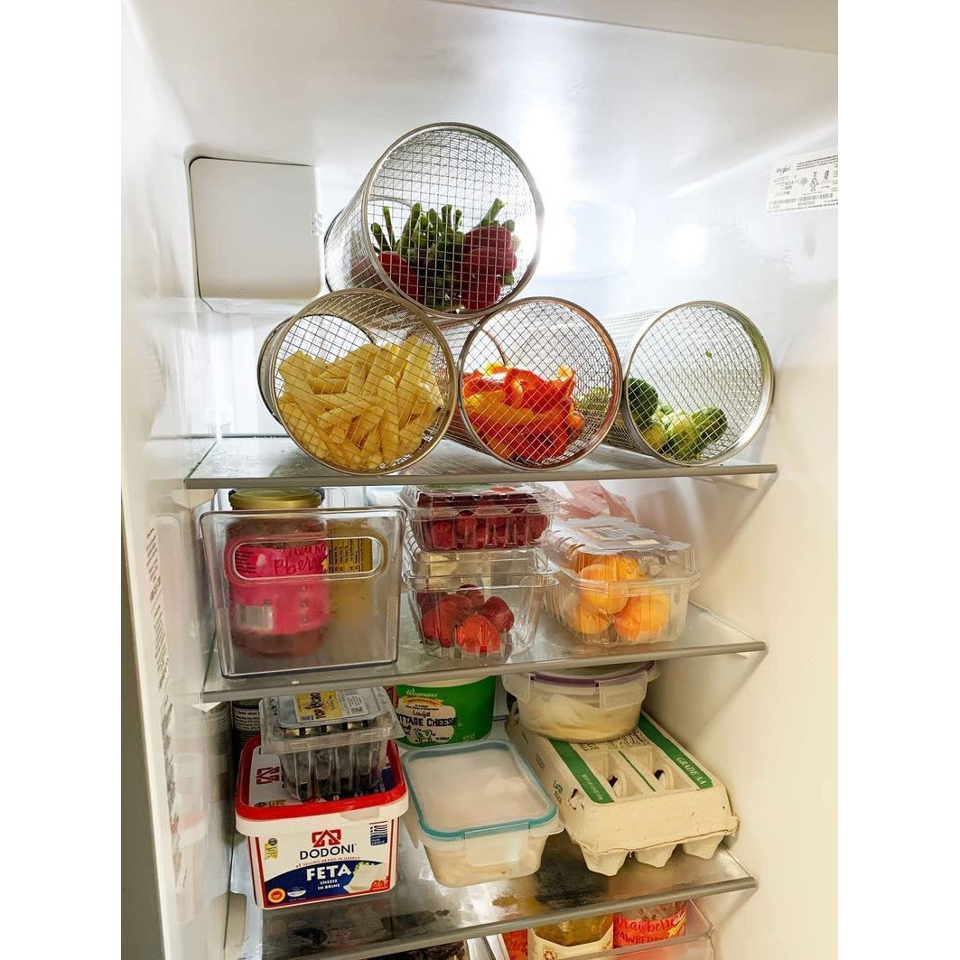 2.Perfect Rolling Grilling Basket - Just put the food in the bag, close the lid, and throw it on the grill. Perfect for both Gas, Electric, Charcoal grill, etc. Suitable for meat, hamburgers, French fries, steak, fish, shrimp, onions, pizza & even more.