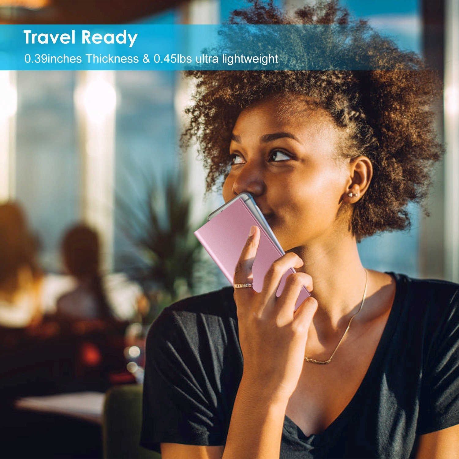 **ULTRA-THIN & BUT STURDY*:Possibly the thinnest power bank compressed into 1cm /0.39inches thickness. Chic business style with anti-oxidation treatment aluminum alloy materials,durable and heat- abrasion resistant. Our power bank is optimal for travelling and working. Ultra-slim design is easy to hold.