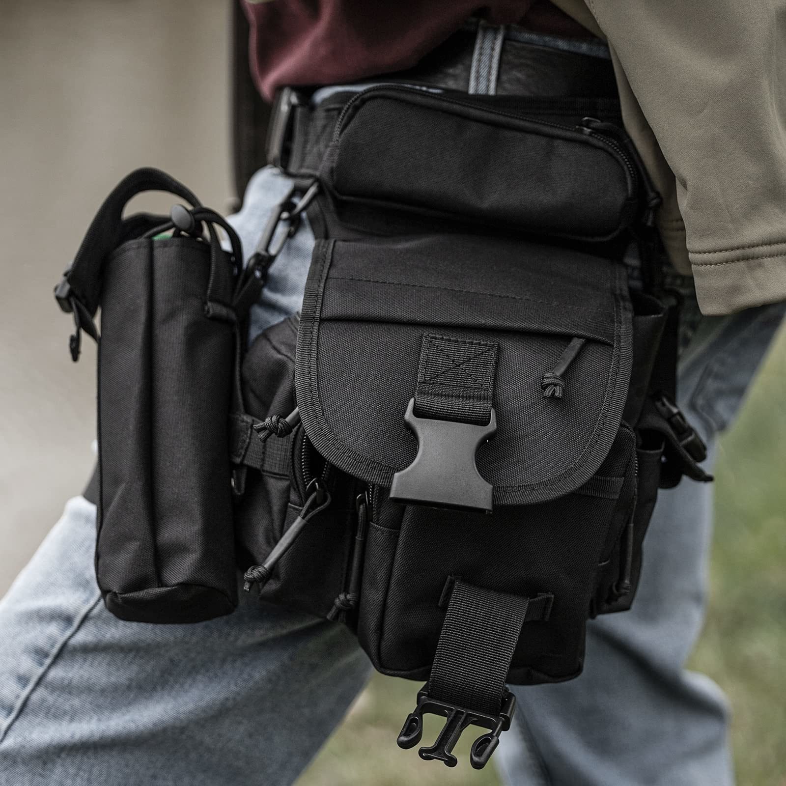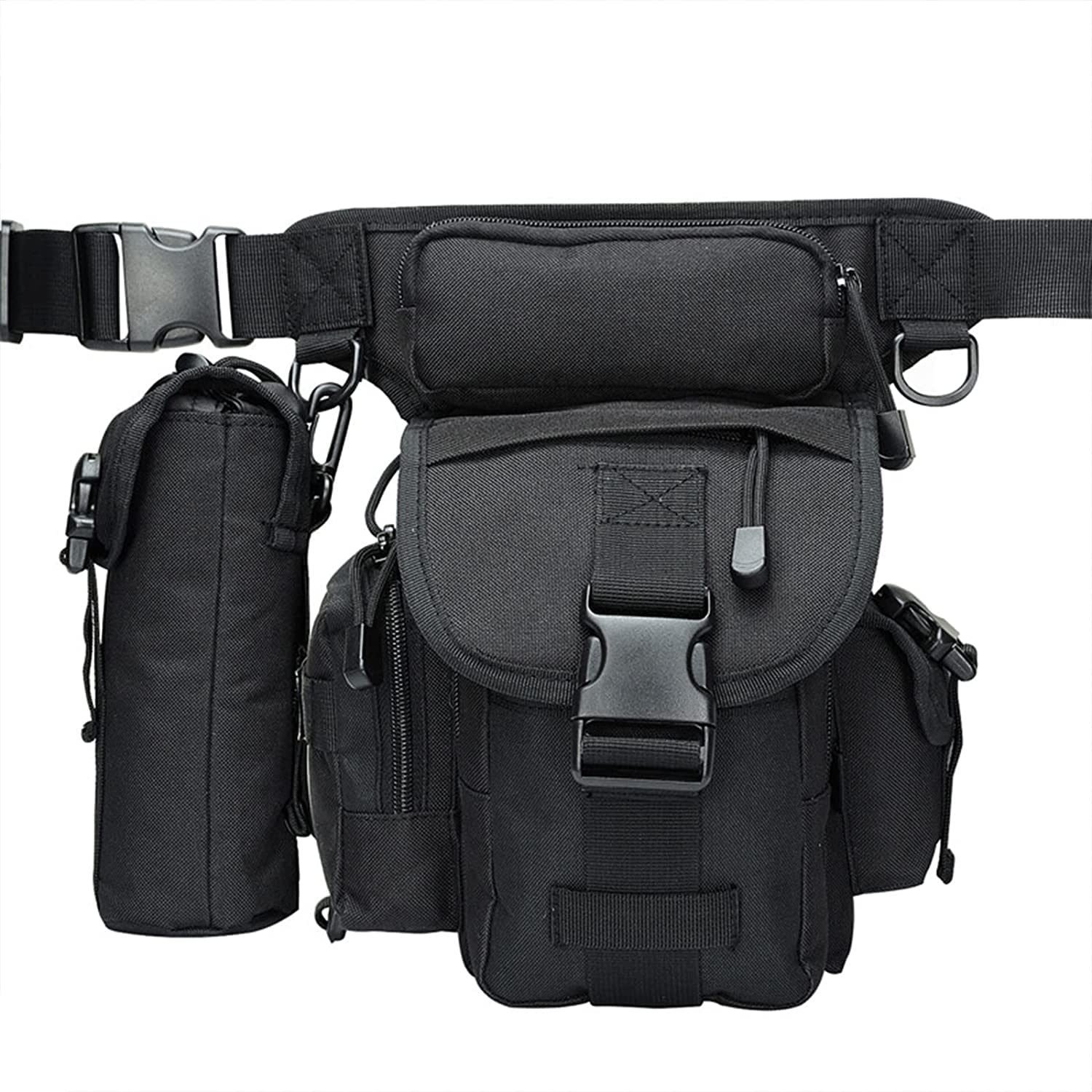 ☀HIGH QUALITY: Made of 900D high density Oxford - waterproof and wear resistant. 8.3 inches wide x 11.9 inches high x 5 inches long The waist and down leg straps are adjustable to make your movements more comfortable. In addition to the main bag we also come with a detachable water bottle bag