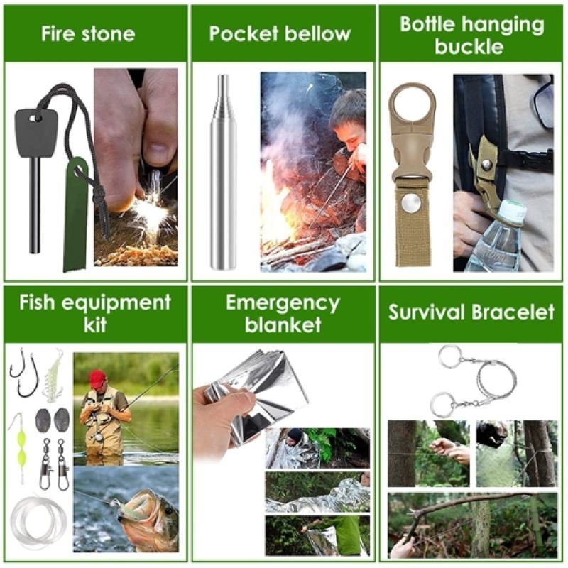 Suitable for outdoor camping and hiking emergency self-help, family life emergency needs, car security survival package, etc.