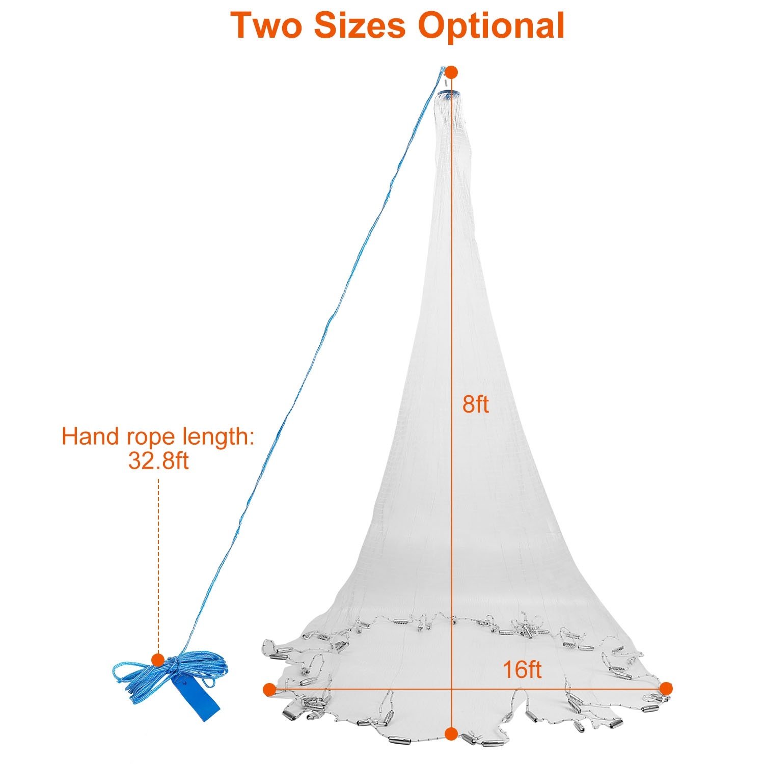 *Premium Net*:Made of premium monofilament material; the net is soft; tear-resistant; and long-lasting. It’s also relatively lightweight; which makes it much easier for you to throw the net at the desired position.