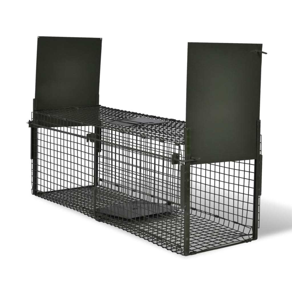 The live catch trap is made of sturdy wire mesh with additional reinforced frame. A foldable handle is equipped for convenient transport both with and without content.Size: 3' 3" x 10" x 1' (L x W x H)2pc doorIron wire: Dia. 0.09"Mesh hole size: 1" x 1"Materials: Steel
