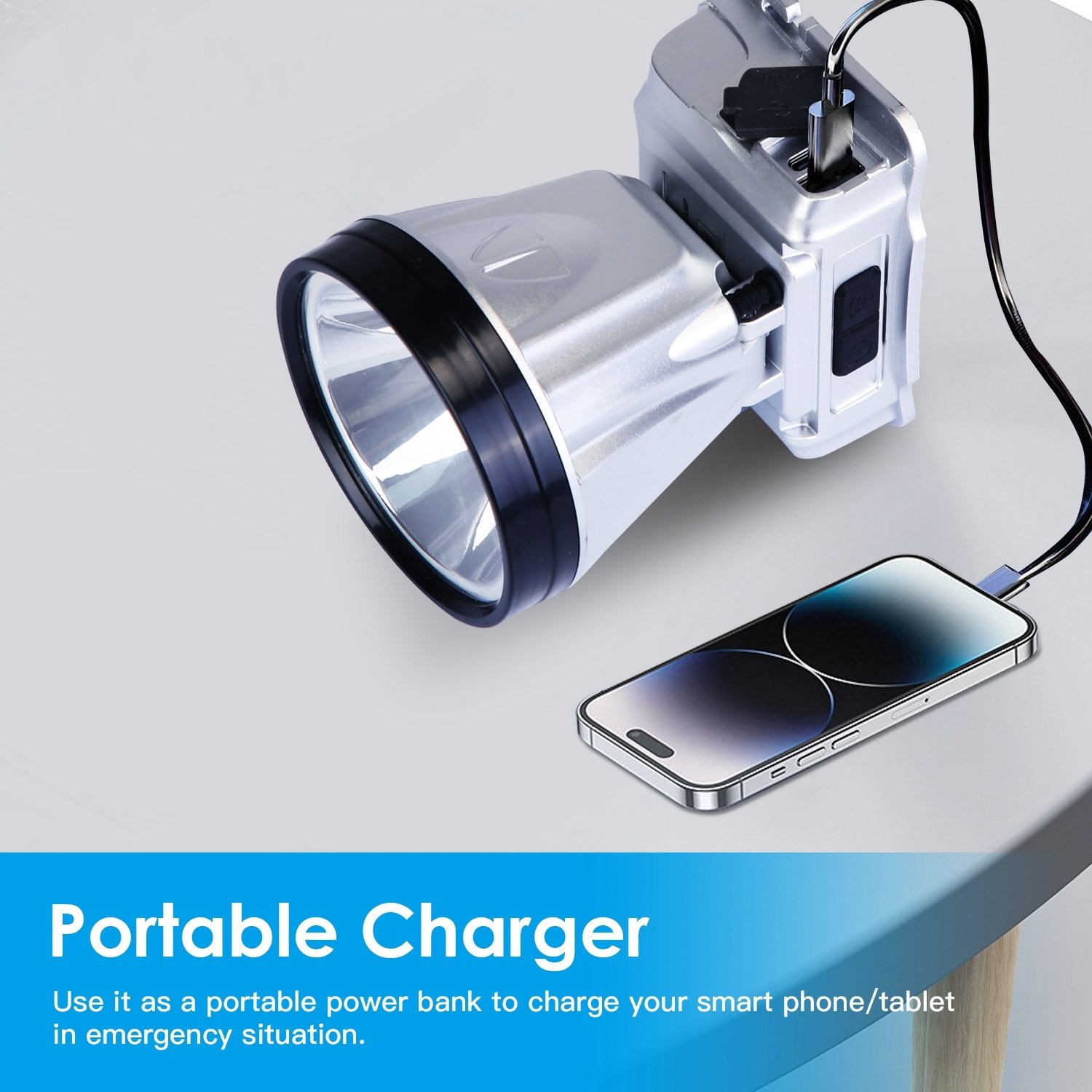 *Portable Charger*:Equipped with a USB output port,you can use the headlamp as a portable power bank to charge your smart phones/ tablet or other devices in emergency situation. Besides,4 indicators can show the real-time battery status to remind you of charging it in time.